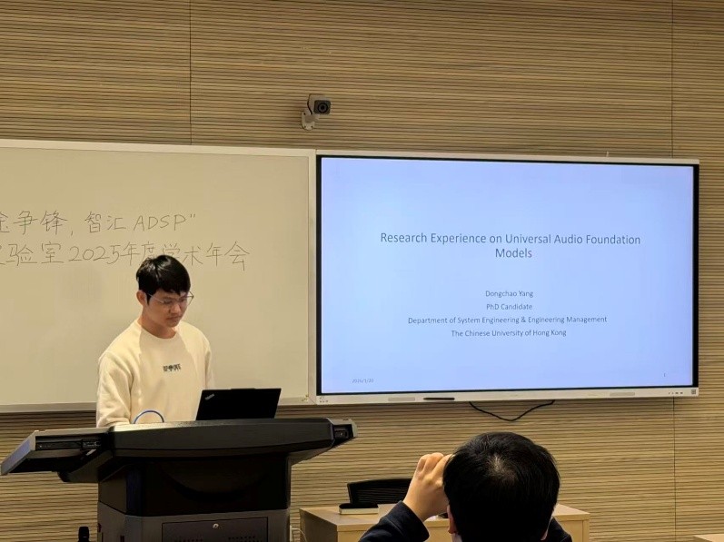 随后,香港中文大学博士生在读的2023届毕业生杨东超受邀对近期科研工作《Research Experience on Universal Audio FoundationModels》进行报告,并分享了在香港中文大学深造的科研心得和研究进展,为在场同学提供了宝贵的经验参照。