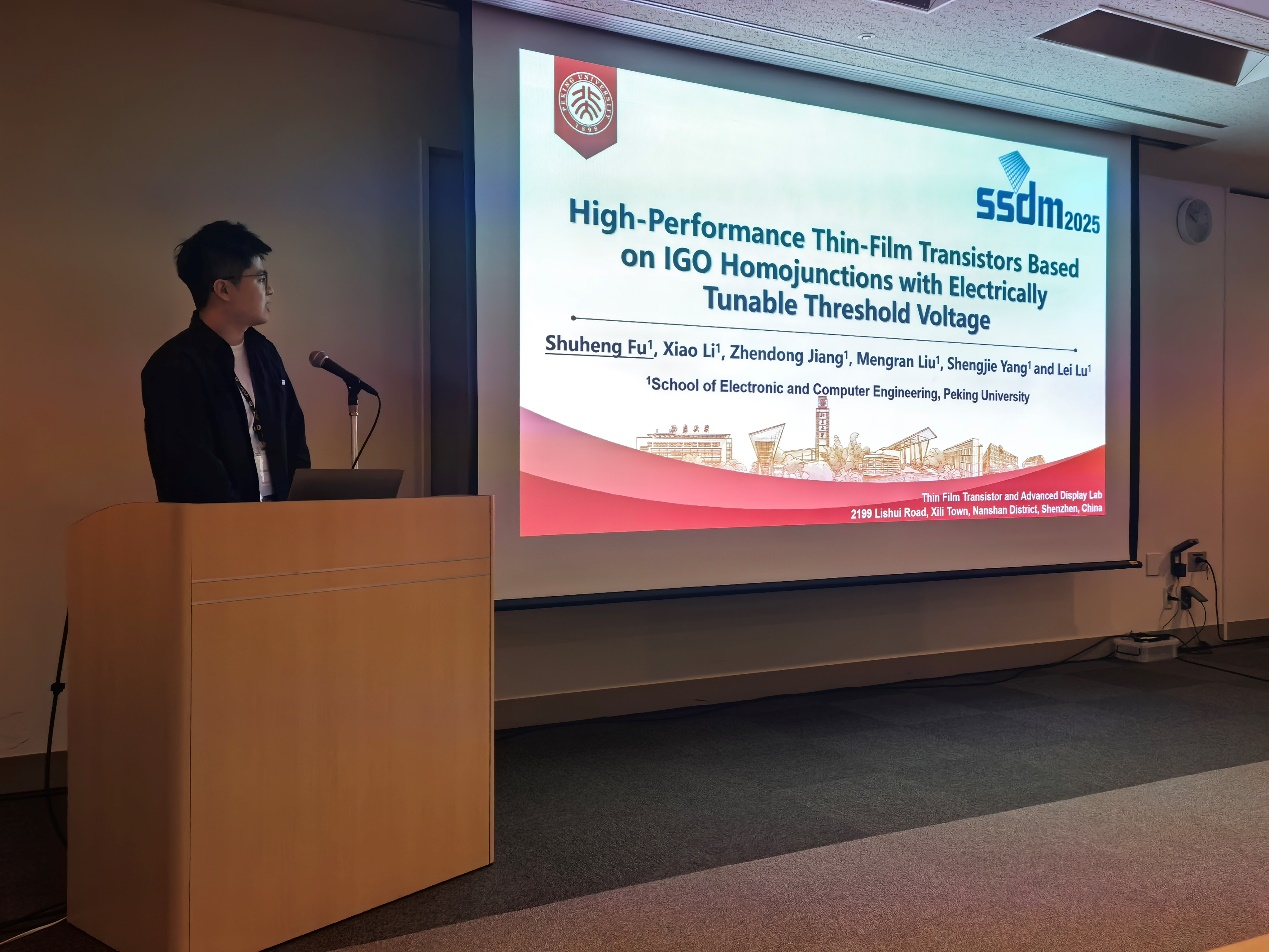 会议期间,实验室师生积极参与学术交流。硕士生付树恒作了题为“High-Performance Thin-film Transistors Based on IGZO Homojunctions with Electrically Tunable Threshold Voltage”的口头报告,系统介绍了其在阈值电压调控方面的研究工作。