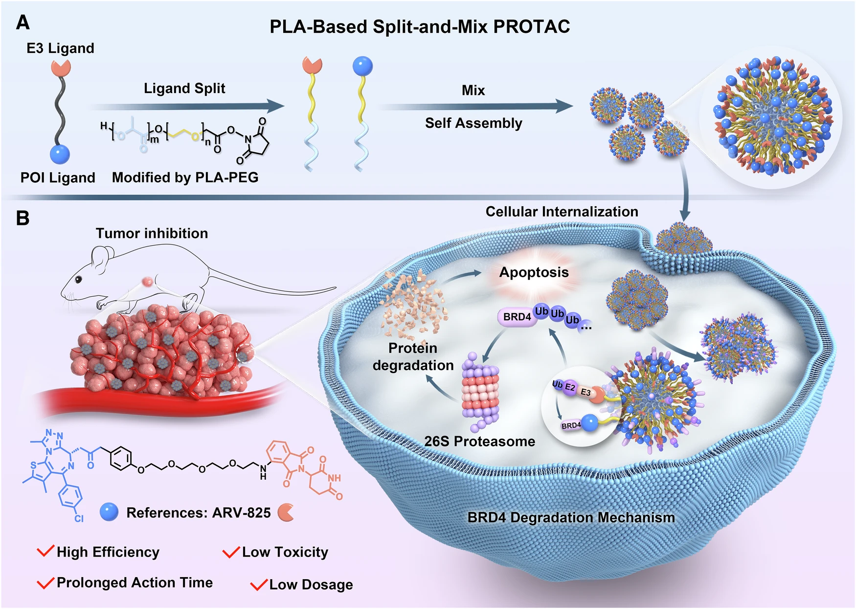 151. Zhan, M.; Chen, H.; He, M.; Song, C.; Jiao, Z.; Liu, N.; Liu, Z.; Hou, Z.; Chen, Y.; Song, Z.; Xing, Y.; Li, Z.; Yin, F. Highly Efficient and Long-Acting Split-and-Mix Proteolysis Targeting Chimera Based on Self-Assembled Polylactic Acid. Nat Commun 2025, 16 (1), 10555. https://doi.org/10.1038/s41467-025-65590-6.