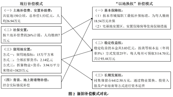 结果显示,新模式在“人、地、产”三个维度均能实现优化。“人”的维度,在确保被征地农民平等享受城市基本保障的同时解决住房的后顾之忧,而“村—政—银”合作模式能够构建起覆盖25年的长效生活保障机制;“地”的维度,能够规避留用地规划与运营短板,使土地资源转化为市场化运营资本,有效提升资源配置效率,同时缩短征地项目安置周期,提升征地效率;“产”的维度,有助于激活农村集体经济,解决增收渠道单一、内生动力不足等问题,为新型集体经济发展探索可行路径。
