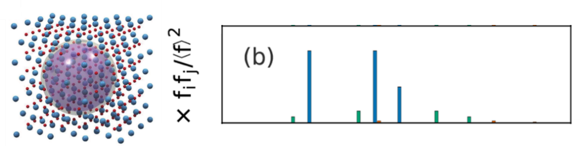 其中rvu是样品中第v个和第u个原子之间的距离,fu和fv是元素的形状因子。径向分布函数直观图像如下所示,表示以某一原子为中心的半径为r,厚度为 dr 的球壳内包含的原子数。RDF峰位置直接给出了样品中原子之间的距离,它们的强度取决于原子对的形状因子(fu和fv依赖性),以及给定距离的原子对数目。