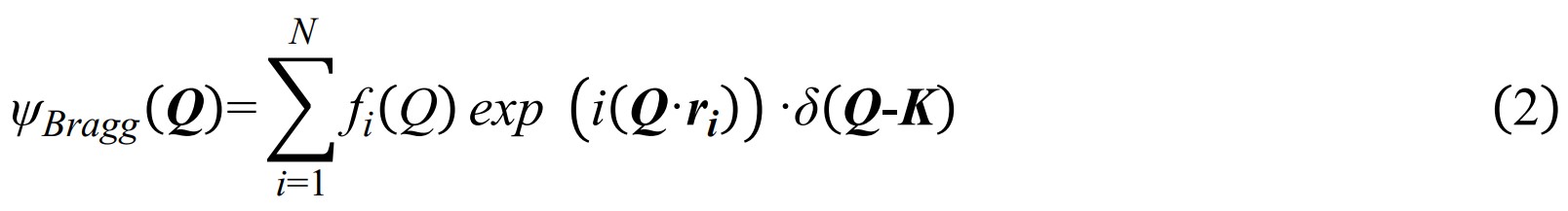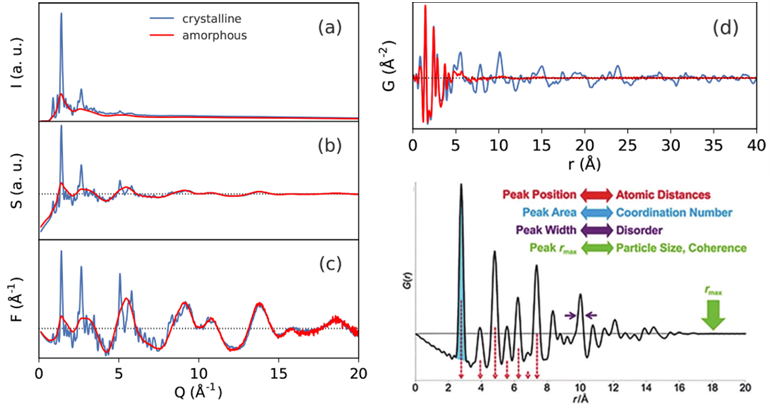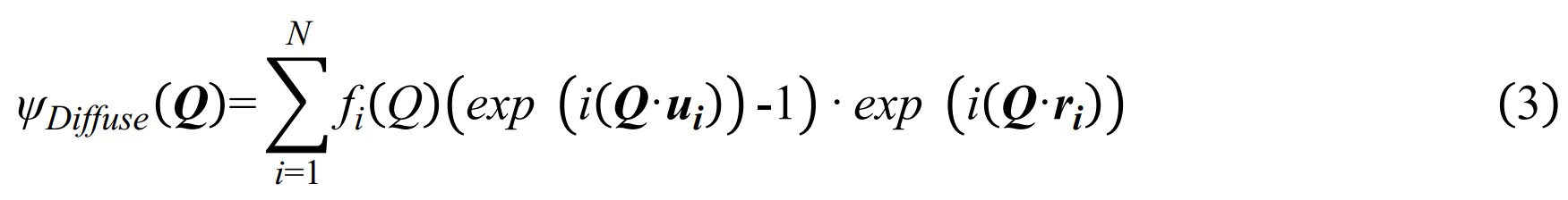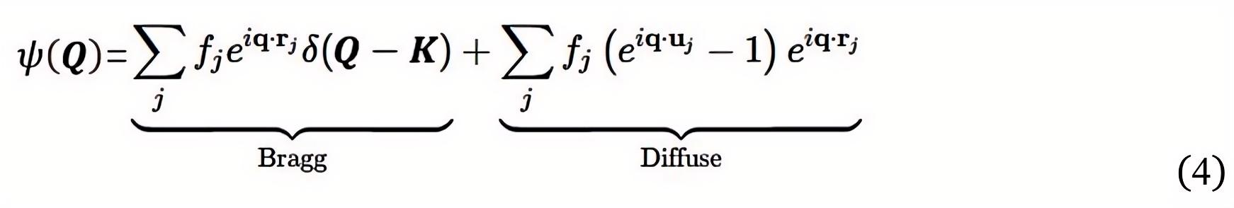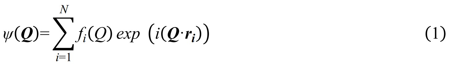 材料总的散射信号由包含晶体长程结构信息的布拉格衍射和包含局域结构信息的漫散射组成,因此也可将其称为全散射信号。对于一个在位置 r → j 包含N个原子的结构,其全散射波矢量Q的振幅可以表示如下: